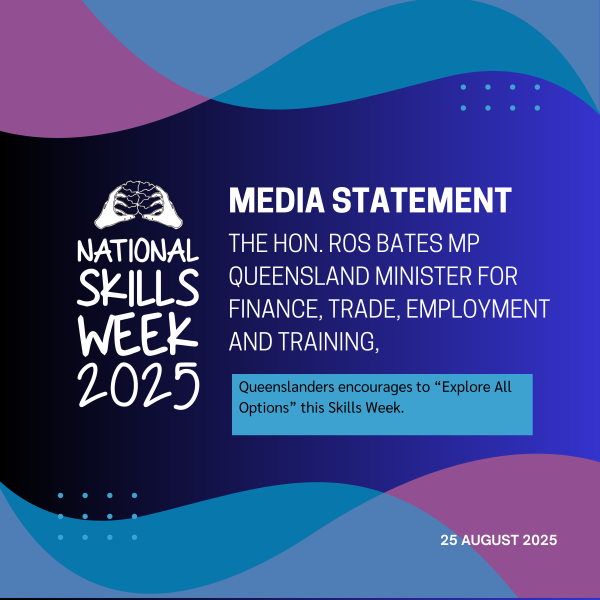 Read MorePublished Monday, 25 August, 2025 at 12:03 PM Minister for Finance, Trade, Employment and Training The Honourable Ros Bates Queenslanders encourages to “Explore All Options” this Skills Week National Skills Week 2025 (25-31 August) highlights training pathways that lead to real jobs and stronger communities. One million Queenslanders take part in vocational education and training...