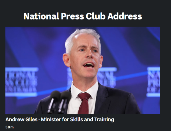 Read MoreOn Tuesday 26 August as part of National Skills Week , Minister Giles addressed the National Press Club on the topic “Skilling Australians’ Future” View the address via ABC iview. You will need to log into your Iview account https://ministers.dewr.gov.au/giles/national-skills-week-launch-canberra
